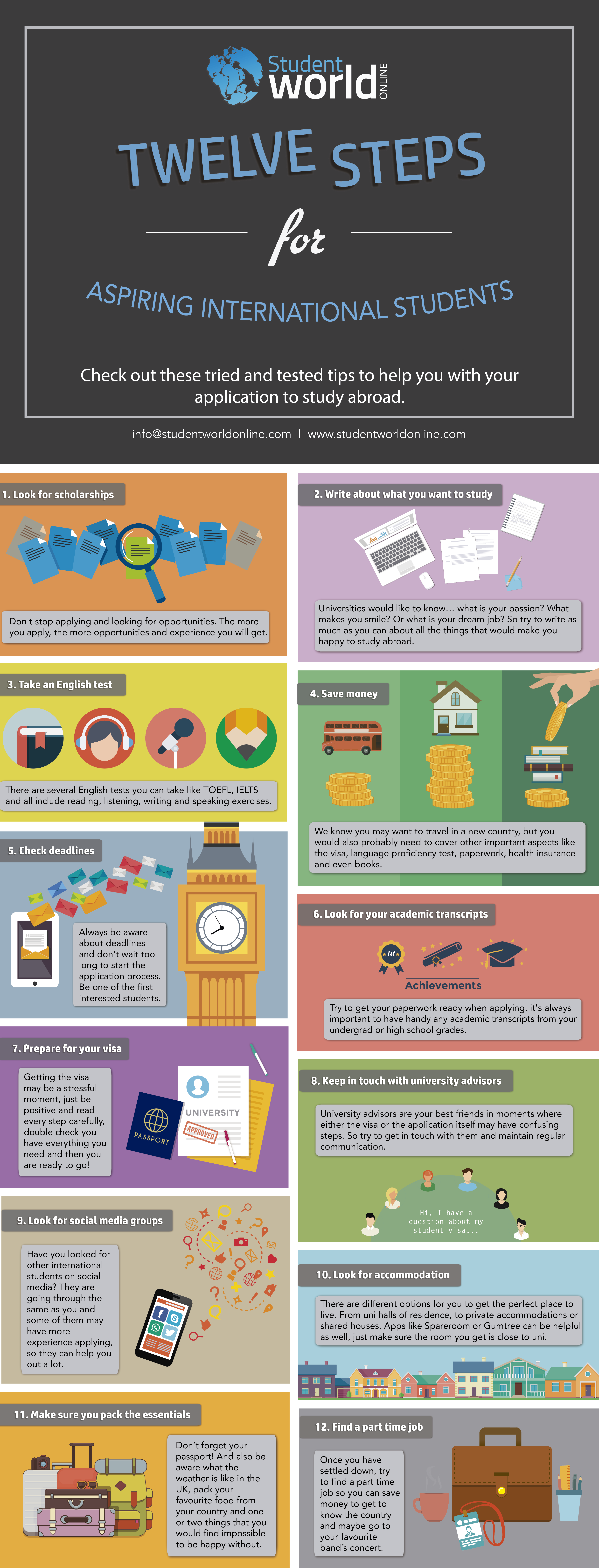 Need some advice about studying abroad? Whether it be looking for scholarships, preparing for your visa or even what to pack, we have you covered! Our unique step-by-step guide for aspiring international students will give you some handy tips on the process and more.